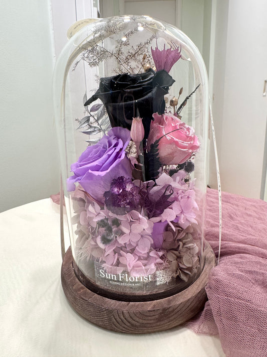 Midnight Muse-Illuminated Preserved Flower Dome