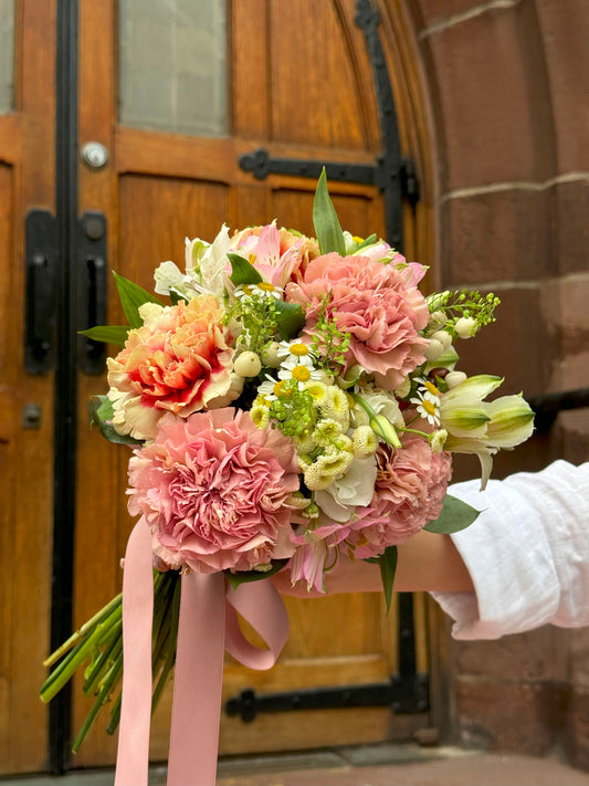 Romantic Peach & Pink Carnation Bridal Bouquet